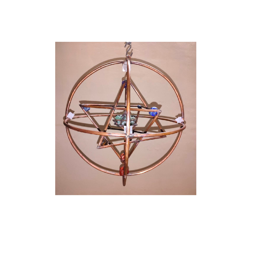 Copper Hanging Merkaba with crystals