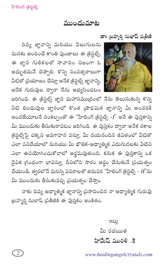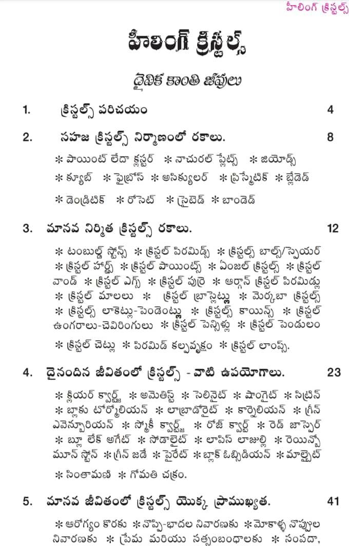 క్రిస్టల్స్ గురించి మొట్టమొదటి సారిగా, పూర్తి వివరణతో వచ్చిన ఈ హీలింగ్ క్రిస్టల్స్ పుస్తకం ఎంతో పరిశోదించి రాయటం జరిగింది.