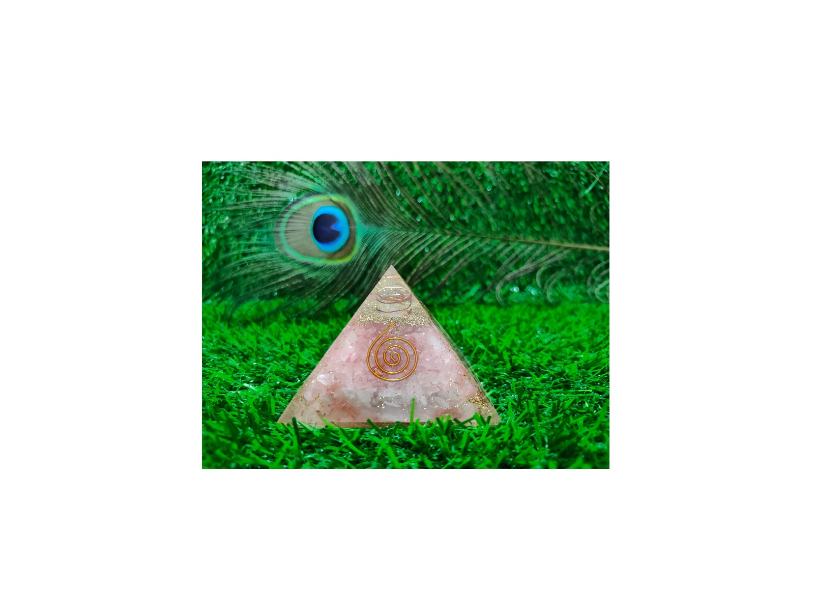 The pyramids have been a sacred symbol in many cultures and for millennia. The pyramid represents the union of the trinity and the four directions, creating a vortex of energy that can heal, purify, and magnify what you focus on or intend. This pyramid is layered with pink quartz, the stone of universal love, and then surrounded by deposits of various metals to transmit energy absorbed from the ether.