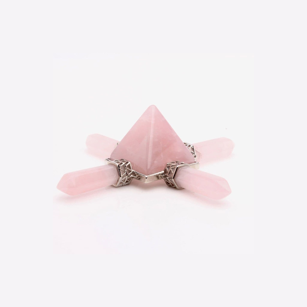 This can be used in many ways. The central pyramid amplifies the four other crystals sending the energy in each direction and through its apex. They are wonderful for healing and Chakra balancing, place them over the Chakras or areas of the body where energy needs to be transmuted or magnified, depending upon your intention.