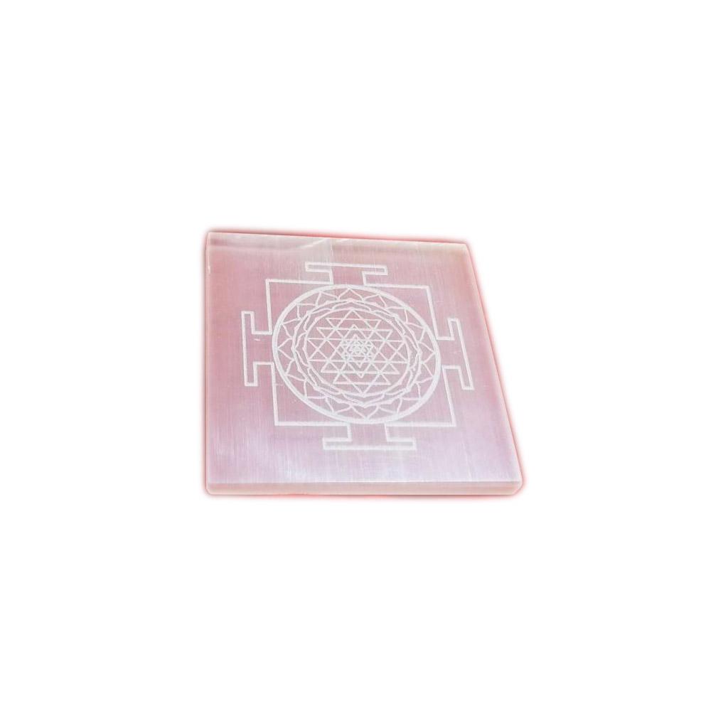 సహజమైన సెలినైట్ యొక్క ఈ ప్లేట్ చతురస్రాకారంలో తయారుచేయబడి, పైన “శ్రీ యంత్ర”తో చెక్కబడి ఉంటుంది.