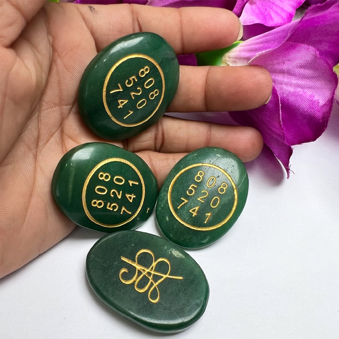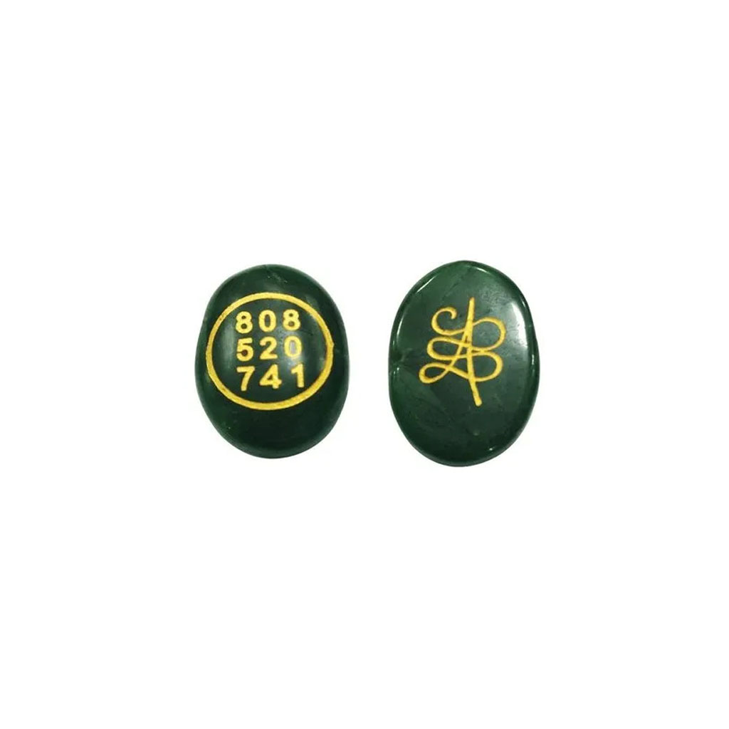 ఈ గ్రీన్ అవెన్చురిన్ స్టోన్ పై ఒక వైపు ప్రత్యేకమైన ఏంజల్ నంబర్స్ మరియు మరో ప్రక్క జీబు గుర్తుతో ప్రత్యెకంగా నిర్మించటం జరిగింది.